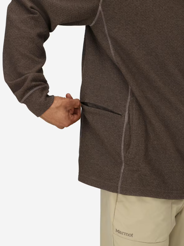 Marmot Ridge Tech Hoody е универсална дреха, съчетаваща комфорт и практичност. Материята е с структуриран външен слой и мека вътрешна повърхност, което осигурява приятно усещане при носене и допълнителна издръжливост. Комбинацията от памук, рециклиран полиестер и еластан осигурява добра еластичност, свобода на движение и дишаемост през целия ден.