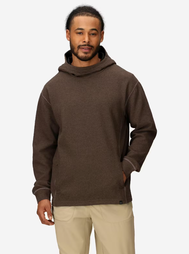 Удобен и функционален мъжки суитшърт със структуриран плат, съчетаващ мека вътрешна повърхност с текстурирана външна страна и практични детайли, подходящ за ежедневие, къмпинг или активни преходи.