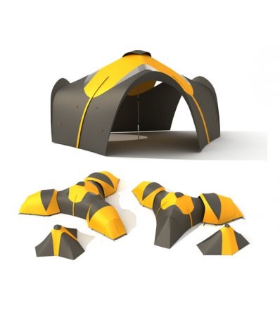 The FORUM creates a protected living space by connecting the Approach tents.